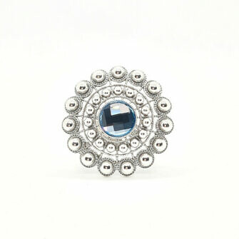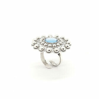 Un anillo de botón charro diferente con un toque más fresco y moderno gracias al cristal de color azul celeste engarzado en el propio botón. Por no hablar de su tamaño que aunque no es para todas, puesto que, como siempre, hay quien prefiere anillos charros más “discretitos” pero sí que ésta tendencia tiene una especial relevancia entre ??♀️ chicas jóvenes.
