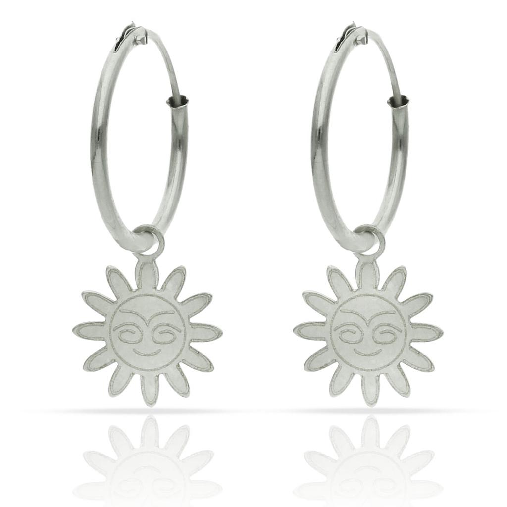 Aros en Plata de Ley 925mm con abalorio de sol.