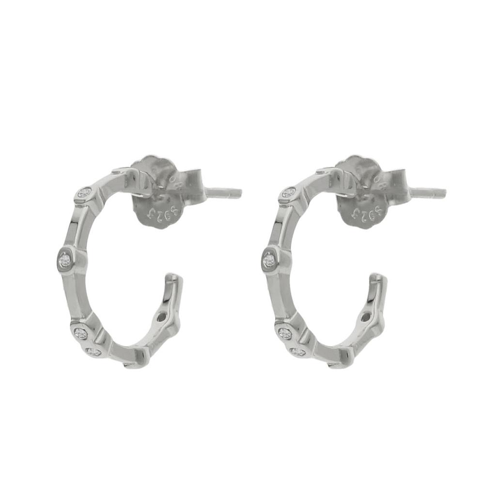 Pendientes de aro en plata de Ley con circonitas. Son unos pendientes sencillos pero preciosos que podrás llevar a diario y combinar con cualquier look.