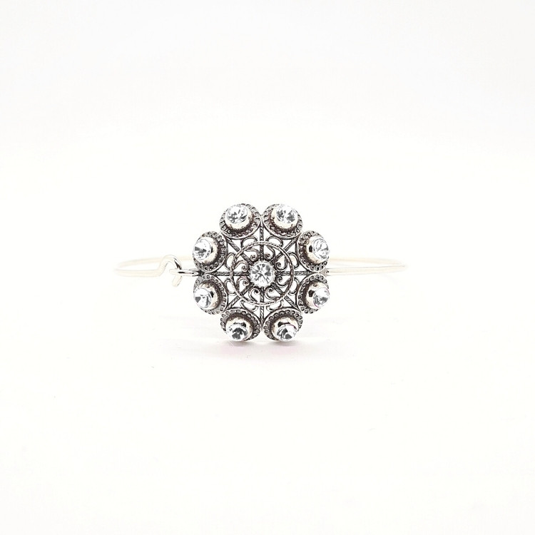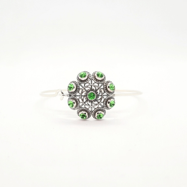 Pulsera charra diferente con un toque más fresco y moderno gracias a los cristales de colores engarzados en el propio botón.