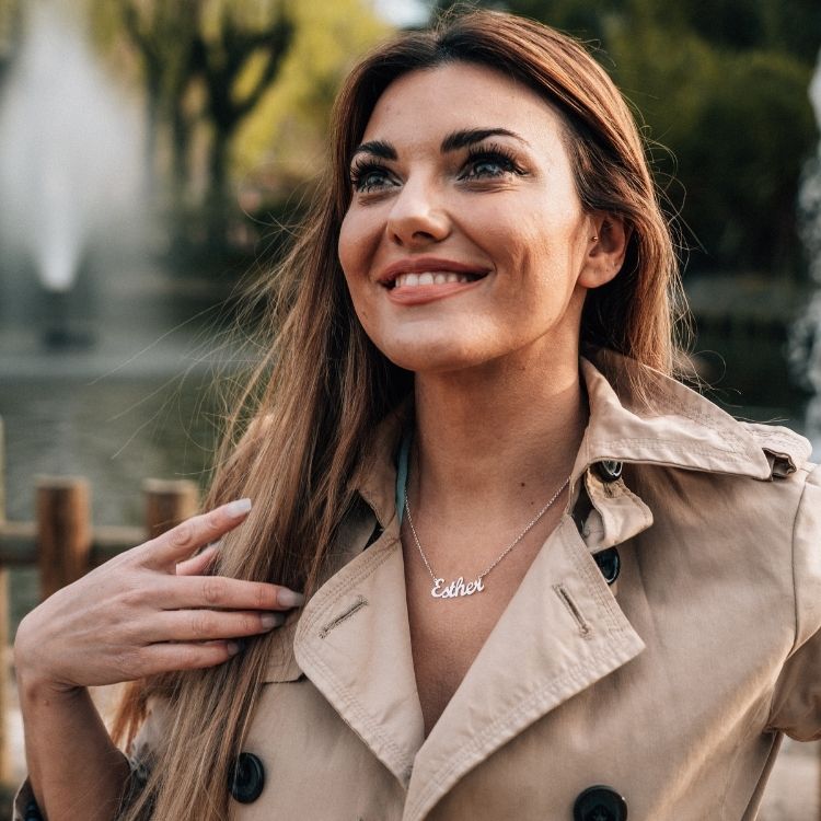 Si estas buscando un colgante con tu nombre, aquí te ofrecemos esta elegante joya. Esta elaborada con letra inglesa grande y la puedes encontrar en oro, oro blanco y plata. Es perfecta para hacer un regalo o para darte un capricho.