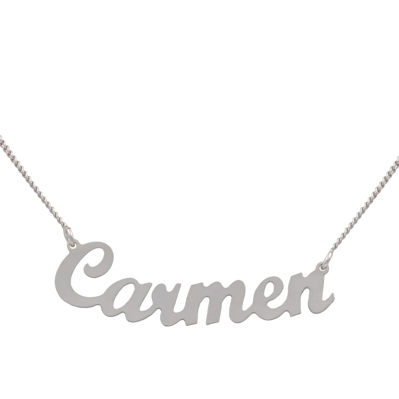 Gargantilla nombre con letra inglesa grande. Alto de la primera letra mayúscula: 10mm. Alto letras siguientes minúsculas: 7mm.