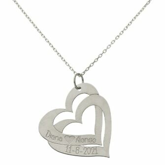 Gargantilla con dos corazones personalizables. Medidas del colgante: 23x25mm. Terminación en brillo.