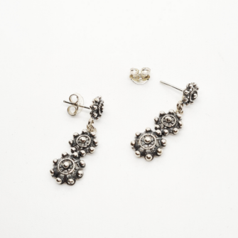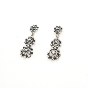 Clásico pendientes de 3 botones charros largos en plata de ley. El complemento ideal charro en plata, éste mismo modelo llega siglos en la cultura salmantina y aún sigue presente en nuestros días.