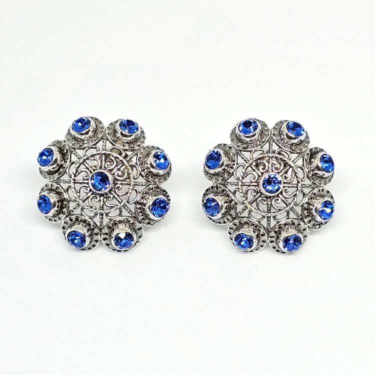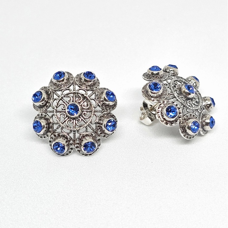 Pendientes en plata de ley de botón charro con cristal y cierre de presión disponibles en distintos colores:
