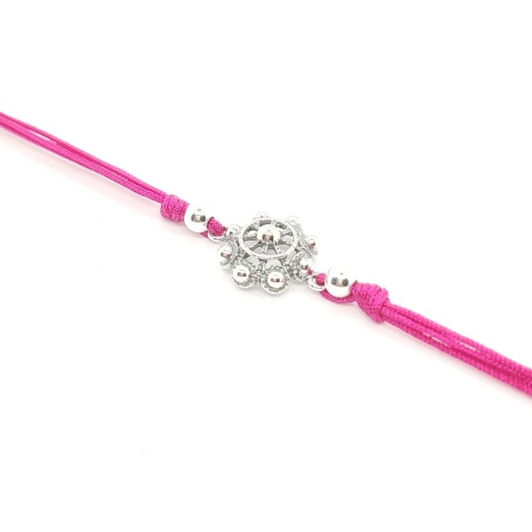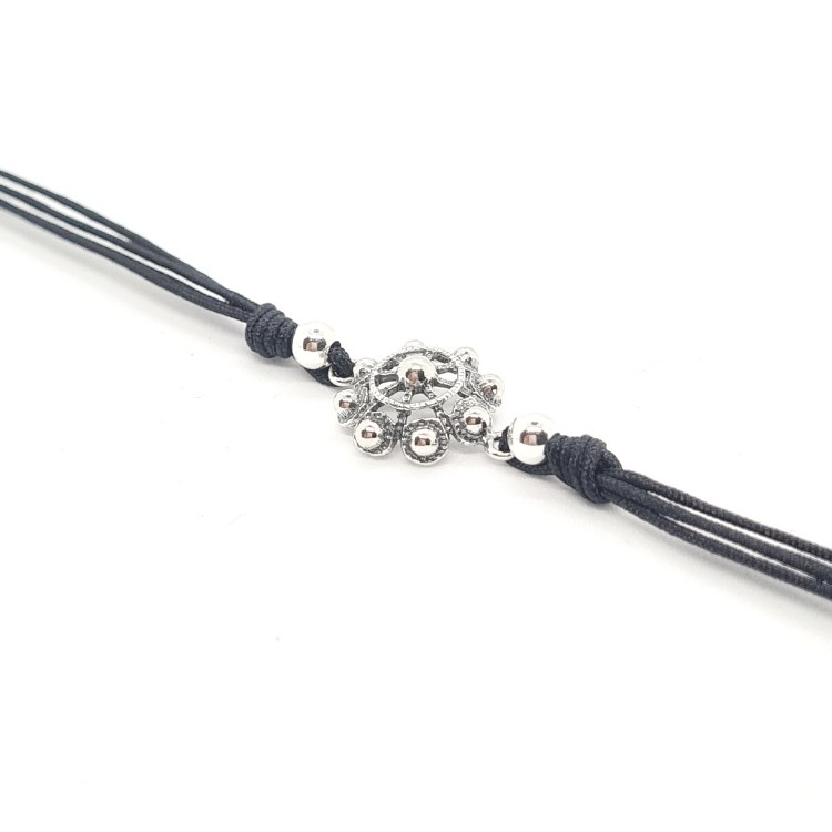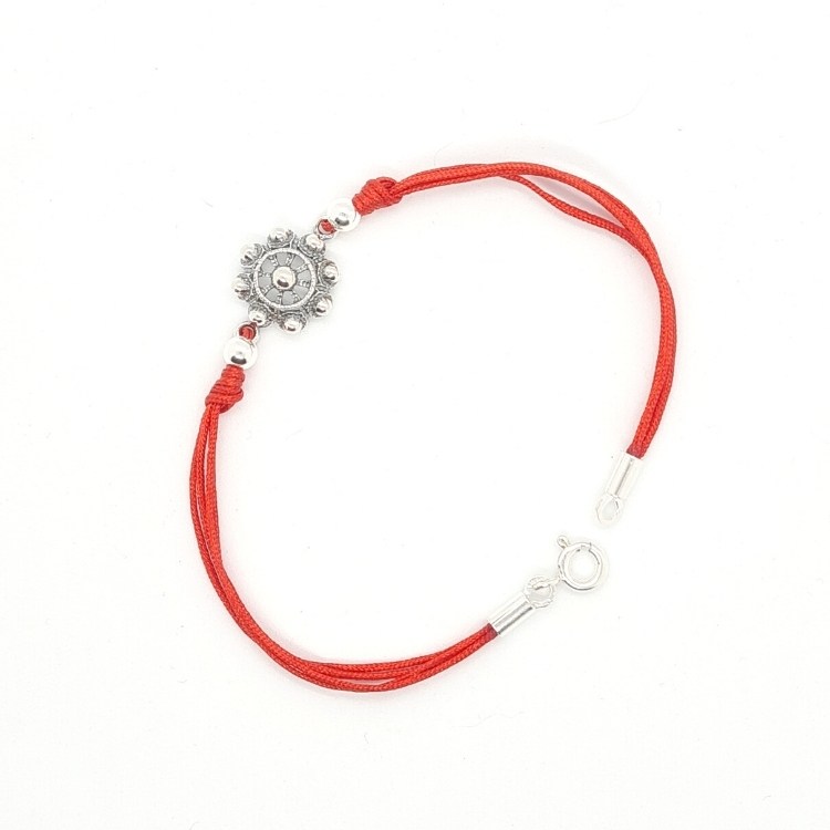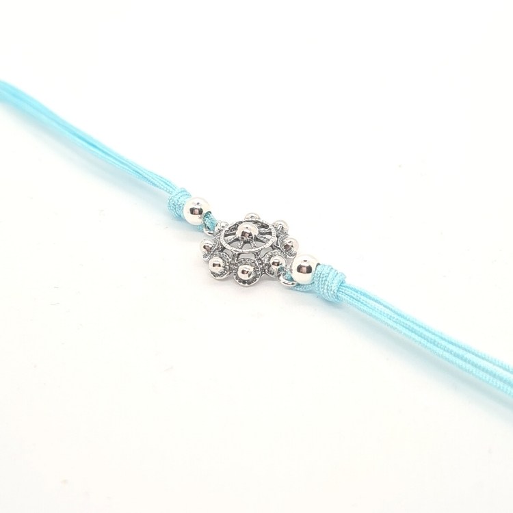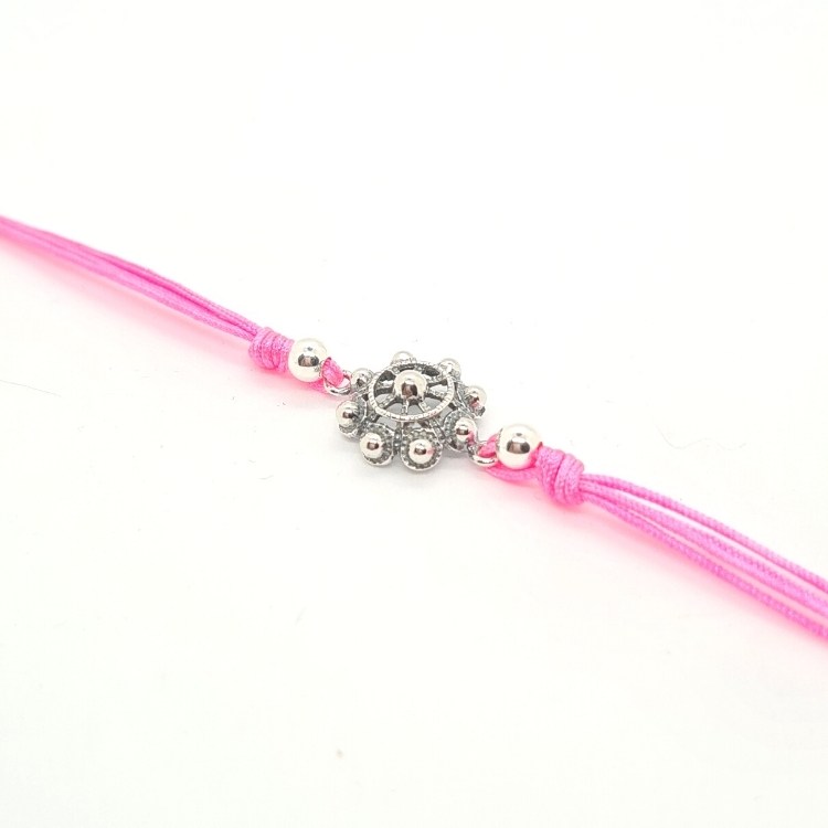 Pulsera de botón charro muy práctica para combinar con otros complementos de distintos colores. Su hilo la desmarca de la clásica pulsera charra o de Salamanca con un toque de color.