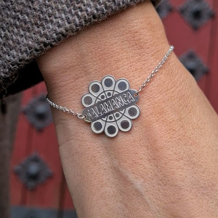 La pulsera , que es un homenaje al botón charro típico de Salamanca, no solo sirve como ornamento sino como una pieza cargada de cultura y tradición. Portarla es llevar un pedazo de la provincia, convertido en arte, en la muñeca.