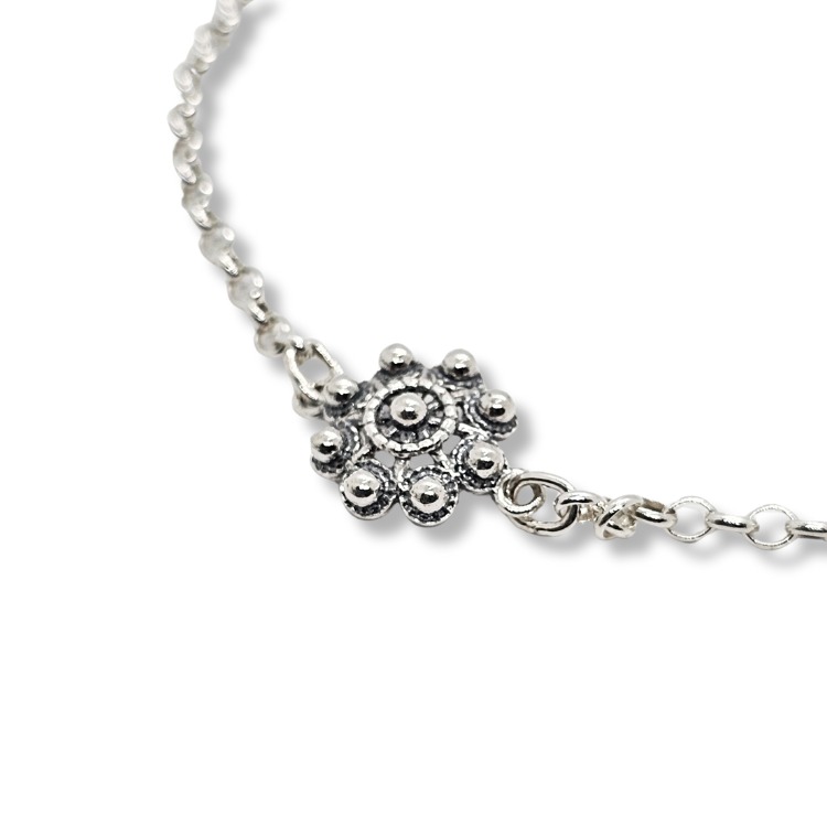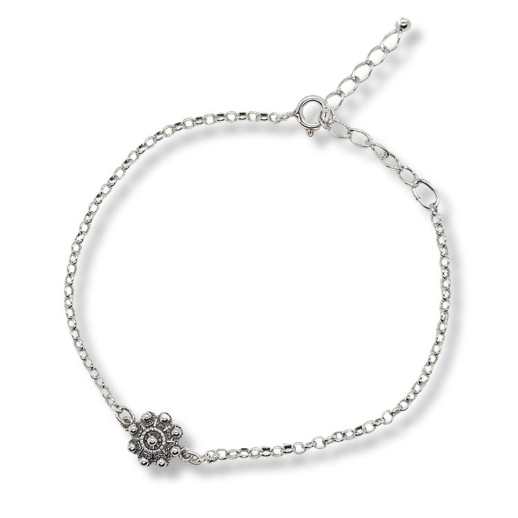 Diseñada para ser cómoda, ajustable y muy especial, esta pulsera incorpora un alargador de eslabones anchos que permite adaptar su largo entre 16 y 20 cm, lo que la hace perfecta para cualquier muñeca. Ligera y versátil, puedes llevarla sola como pieza protagonista, o combinarla con otras pulseras para crear un look personalizado.
