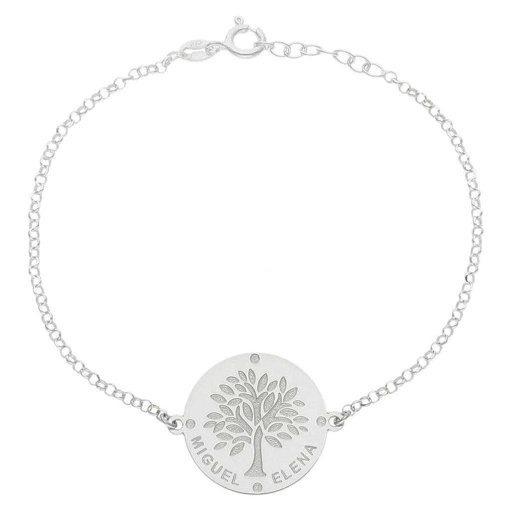 Bonita pulsera con el árbol de la vida en plata de Ley, podrás personalizarla con los nombres que desees. Si quieres una joya única para llevar los nombres de las personas que más quieres, esta pulsera es ideal.