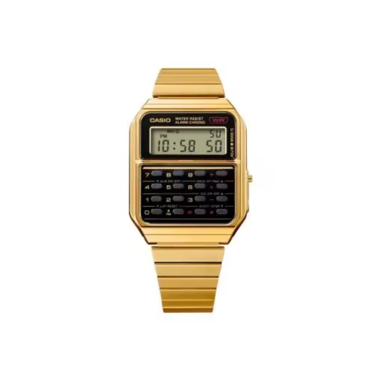 En su regreso, este reloj casio retro mantiene su esencia original, pero con una revisión contemporánea. La nueva carcasa alargada y la correa metálica realzan su estética, y el tono dorado metálico de alta calidad le otorga un toque moderno. Si bien su diseño ha evolucionado, las funciones de calculadora originales siguen intactas, fusionando lo mejor de ambos mundos: nostalgia y modernidad.